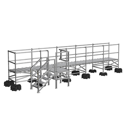 Ils peuvent également être utilisés pour accéder aux roulottes et conteneurs de chantier. Les configurations standards comportent un maximum de 8 marches, tandis que les configurations sur mesure peuvent en inclure davantage.
