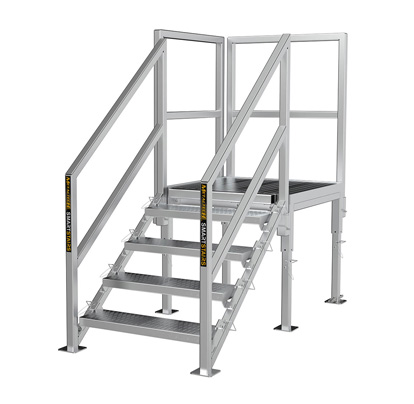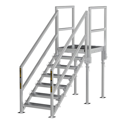 It can also be used for accessing jobsite trailers and containers. Standard configurations have a maximum of 8 steps, while the custom configurations can have more.