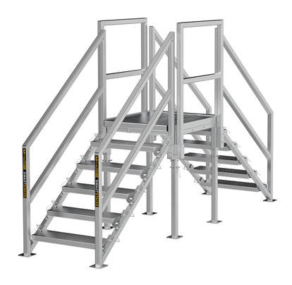 Double stair crossover platform Several configurations available, with a different number of steps on each side.
